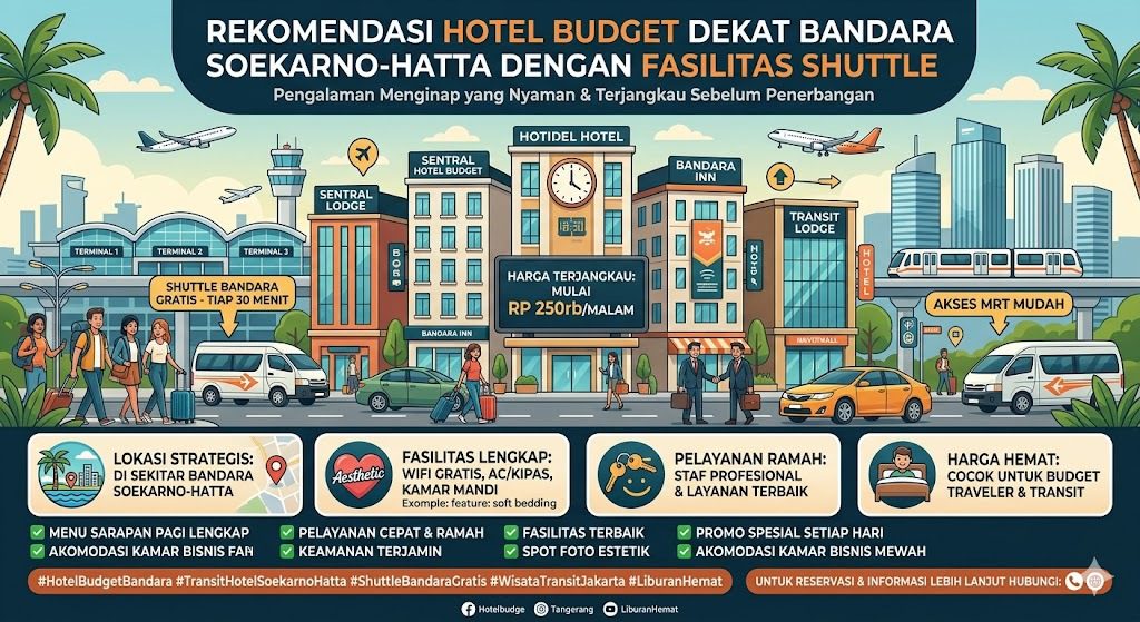 Menginap di hotel budget dekat Bandara Soekarno-Hatta adalah keputusan logis bagi siapa pun yang menghargai waktu dan kenyamanan. Dengan adanya fasilitas shuttle gratis dan harga yang miring, Anda tidak perlu lagi khawatir tertinggal pesawat atau kelelahan karena kemacetan.